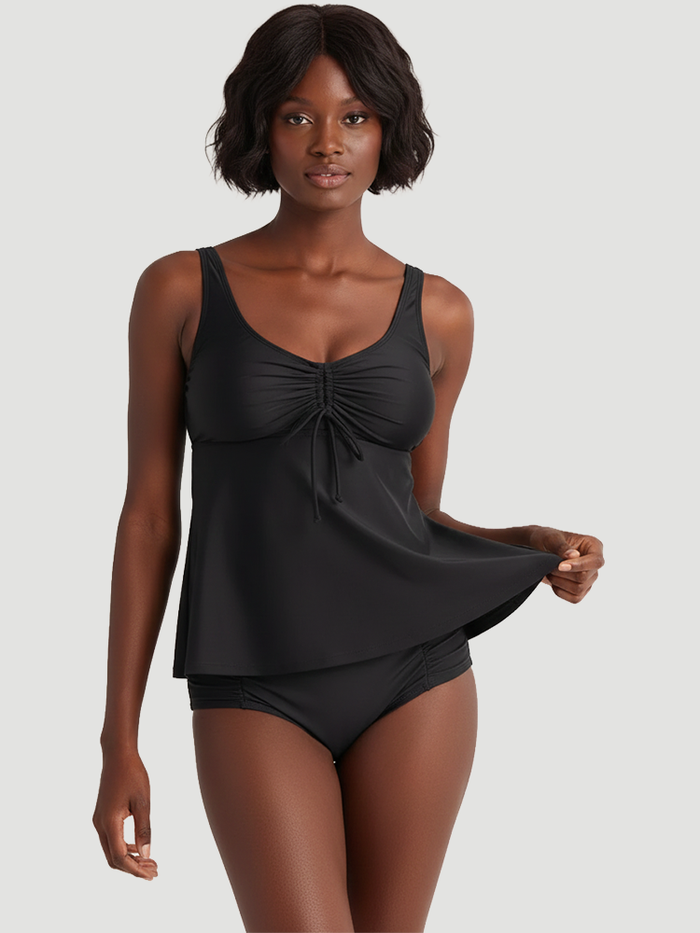 Designed to hit at the hips for full coverage, this stylish tankini offers a smooth, comfortable fit. Adjustable straps provide a customizable lift, while the convertible design lets you switch to a racerback style for added versatility. The adjustable ties at the bust help you find your ideal fit.