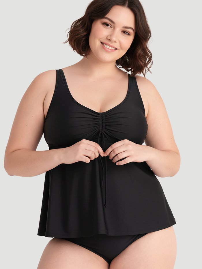 A ruched front adds a refined detail and ensures higher coverage, helping you feel secure and supported. The wireless design with removable cups offers flexible comfort, while UPF 50 fabric helps protect your skin from harmful UV rays.