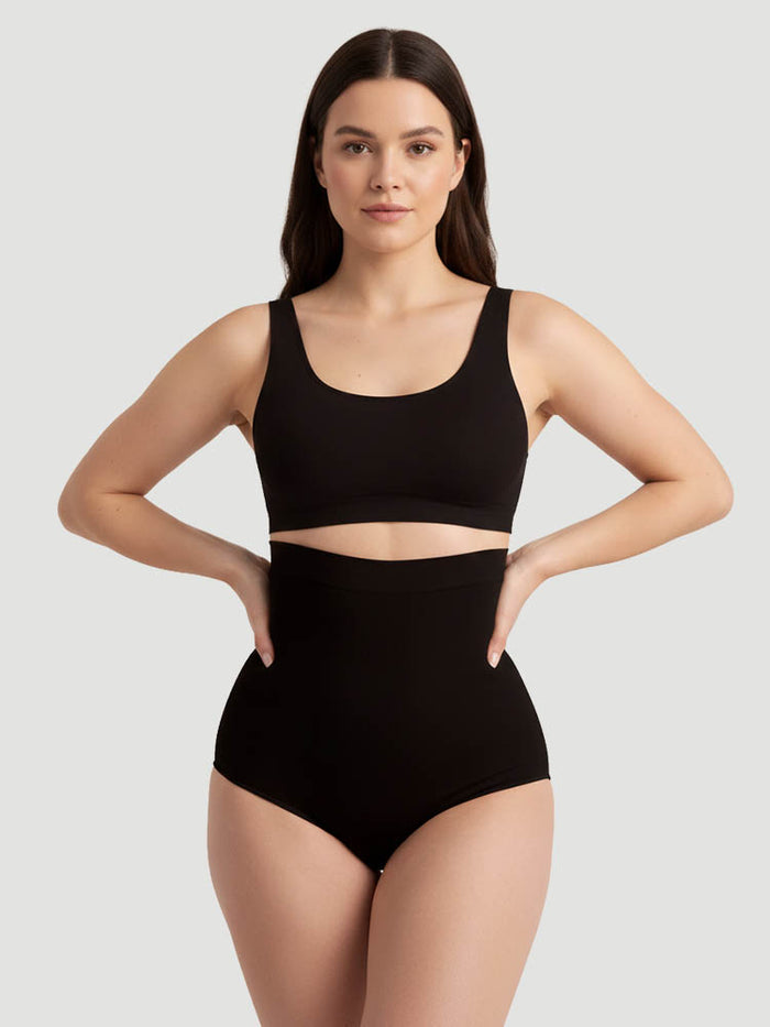 A double silicone-lined waistband helps keep them securely in place and reduces rolling for lasting comfort and dependable shaping throughout the day.
