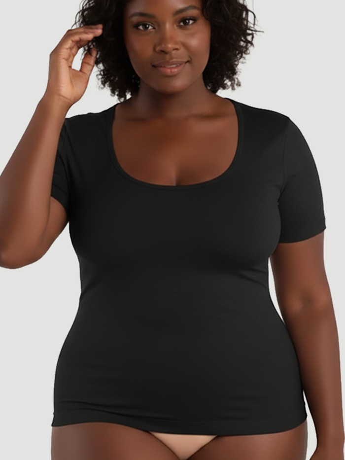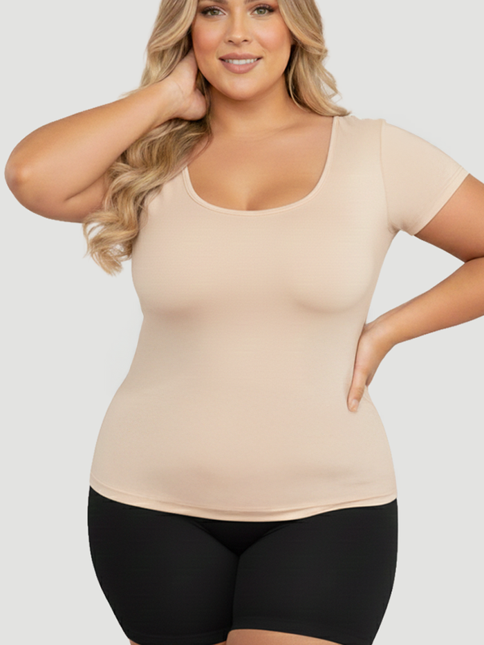 Slip into effortless confidence with our Short-Sleeve Shaping Smoothing Top—your new go-to for a sleek, polished look.