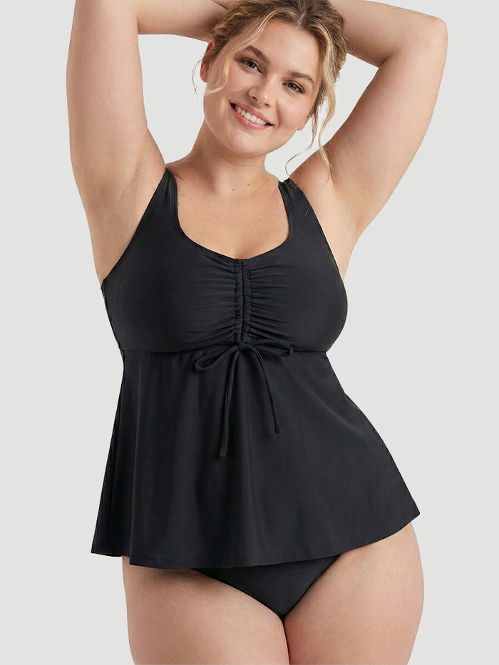 A ruched front adds a refined detail and ensures higher coverage, helping you feel secure and supported. The wireless design with removable cups offers flexible comfort, while UPF 50 fabric helps protect your skin from harmful UV rays.
